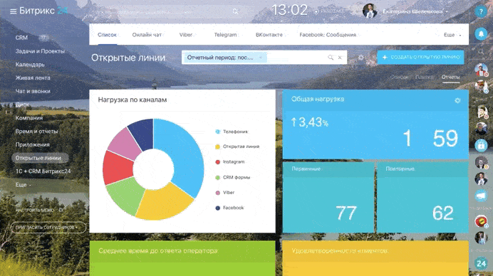 Интегрирует в CRM все каналы коммуникации с клиентами: телефонию, мессенджеры, email, чат на сайте, Facebook, Instagram, ВКонтакте, Яндекс.Чат и другие.
